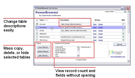 PowerBrowser gives you greater control over your Microsoft Access tables, with fewer mouse clicks! |